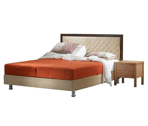 מיטה זוגית מרופדת משולבת עץ בעיצוב עדכני בתפירת טפטינג ייחודית עם מערכת מתכווננת ACTIVE המאפשרת שליטה נפרדת לכל אחד מבני הזוג על הרמת הגב והרגליים.